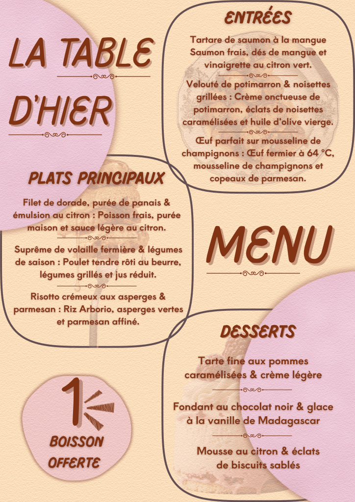Brief: Format A4, typography douce et lisible, style visuel chaleureux, équilibre entre texte et images, sans surcharge.
