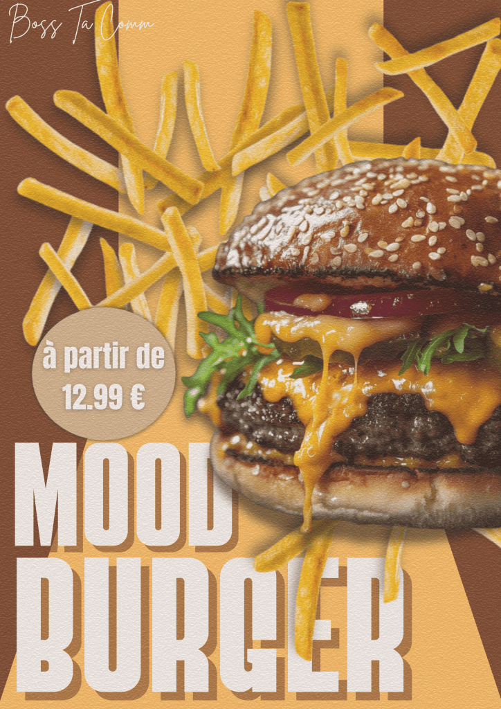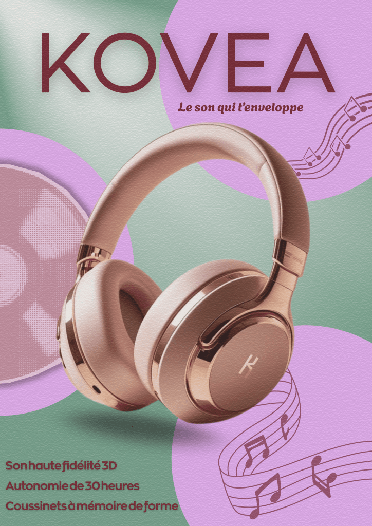 Brief: Format A4, Doit être utilisé en support numérique ou imprimé, Équilibre entre texte, images produit et illustrations secondaires.