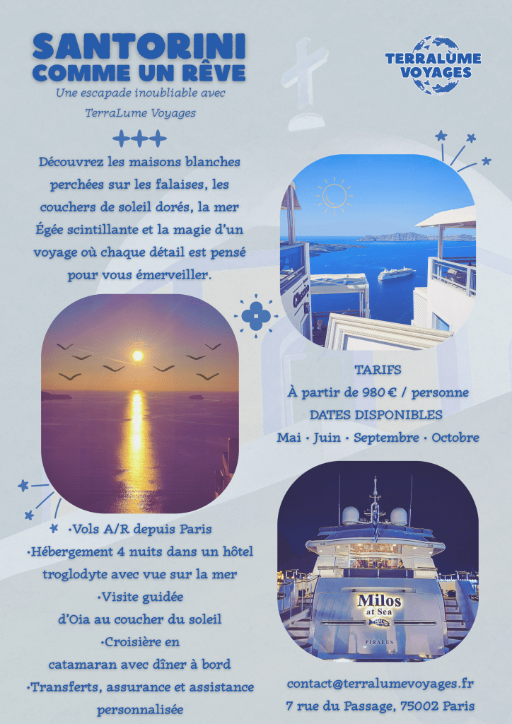 Objectifs: Mettre en valeur la destination de Santorin à travers un visuel esthétique et immersif.