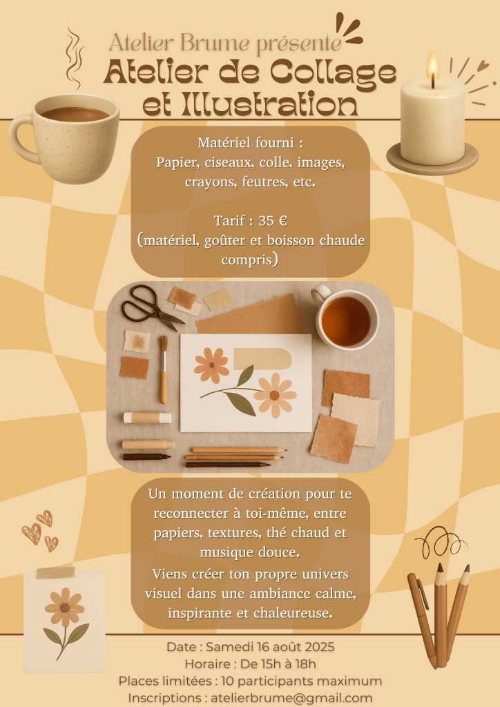 Projet: Conception d’un flyer A4 pour promouvoir un atelier de collage et illustration.